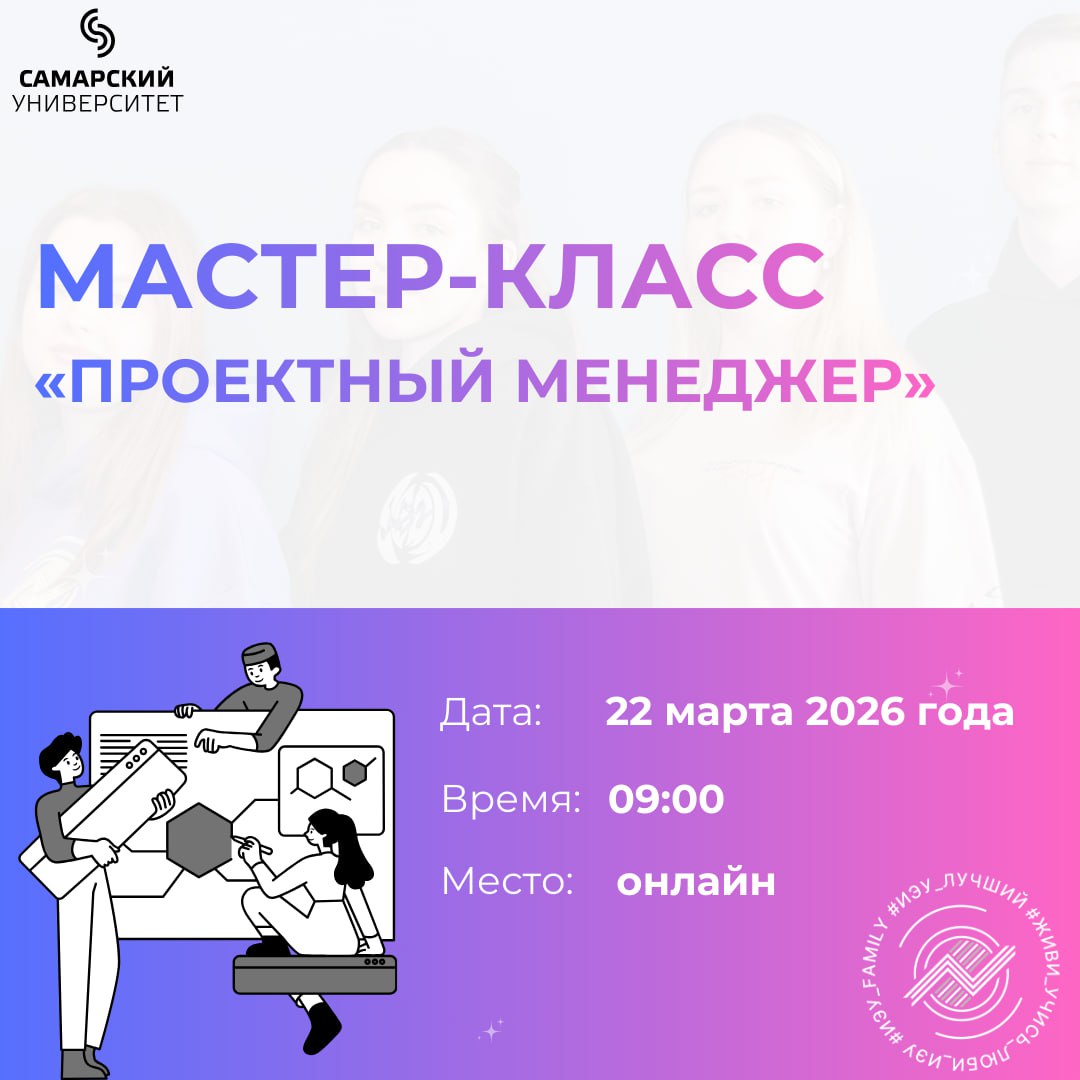 Институт экономики и управления приглашает учащихся 10-11 классов школ и учащихся СПО принять участие в мастер-классе "Проектный менеджер", который пройдет в формате онлайн 22 марта 2026 года в 9:00.